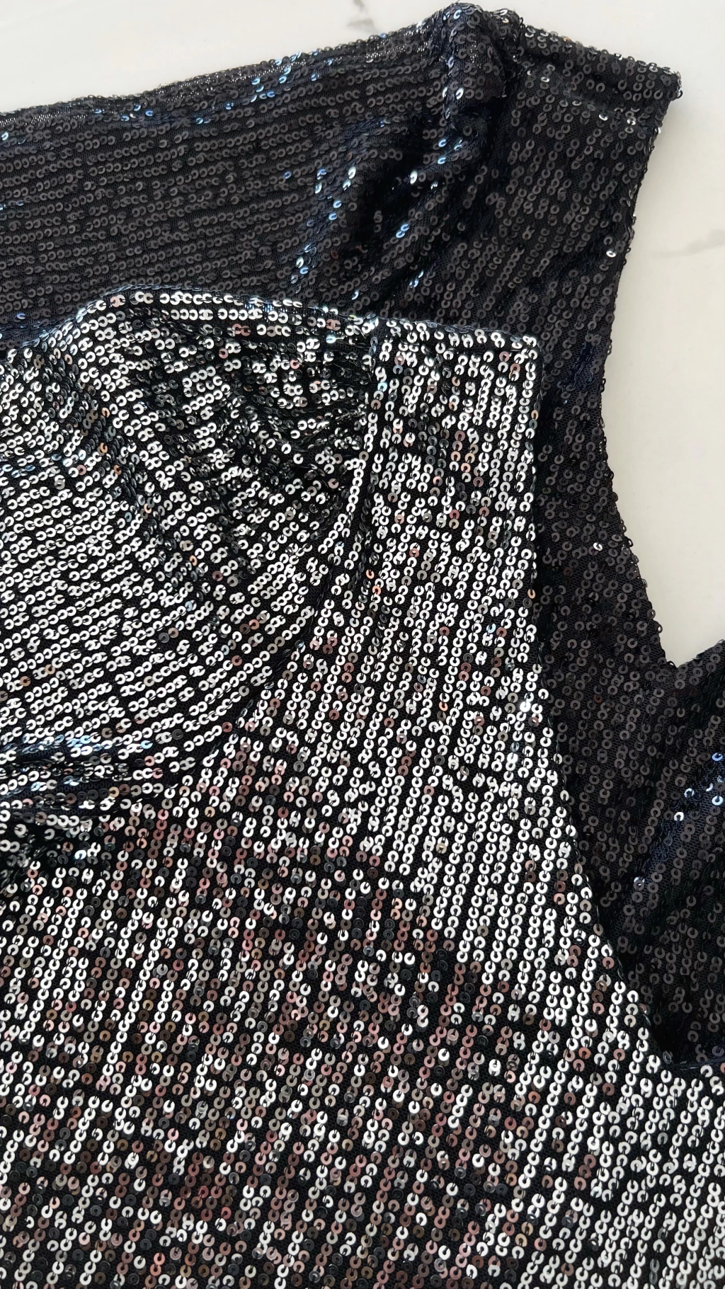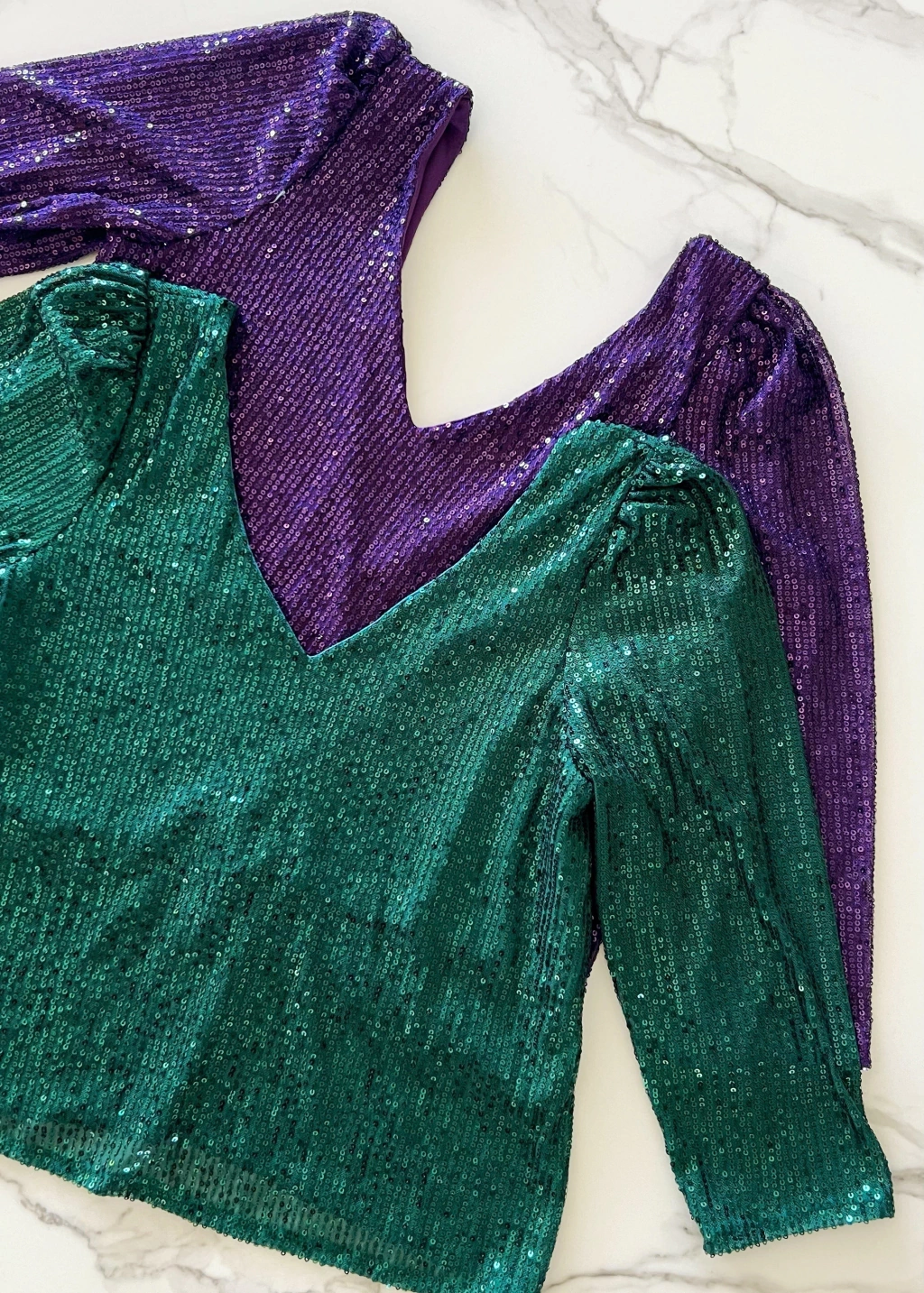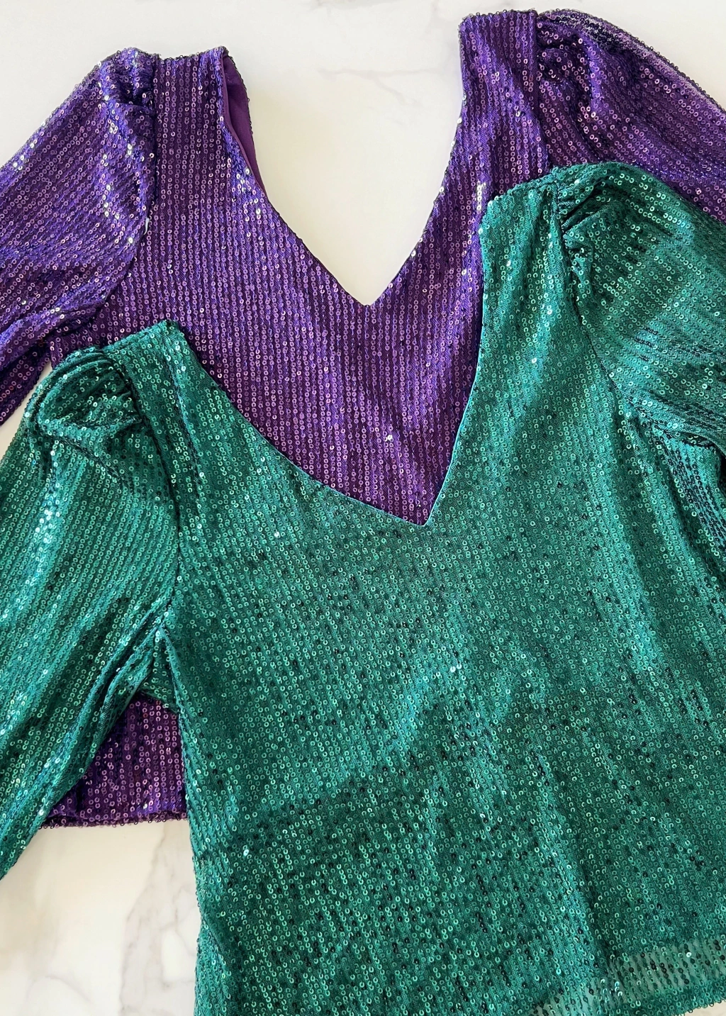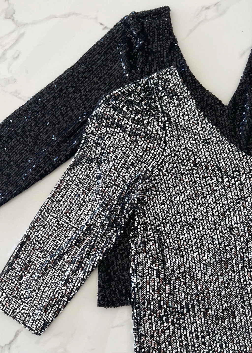 Blusa escote v y espalda tambien en V profundo, manga 3/4 de lentejuelas.