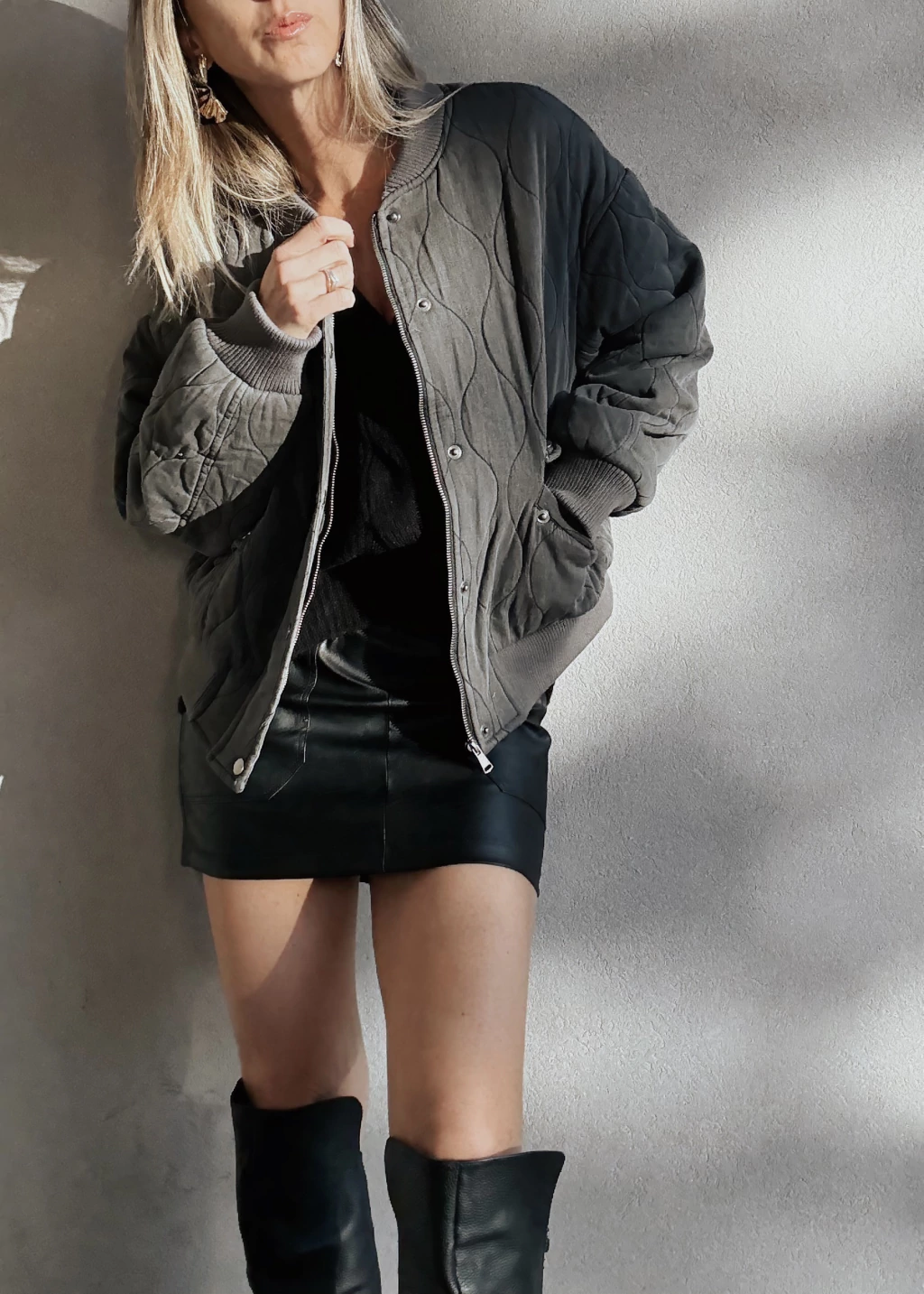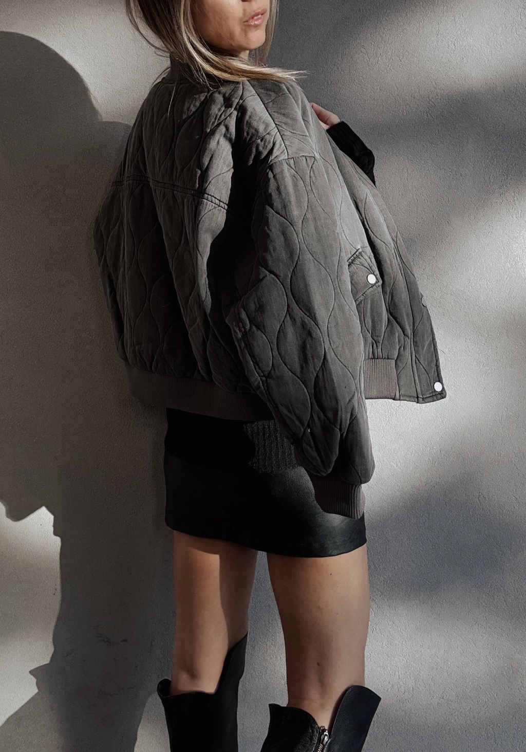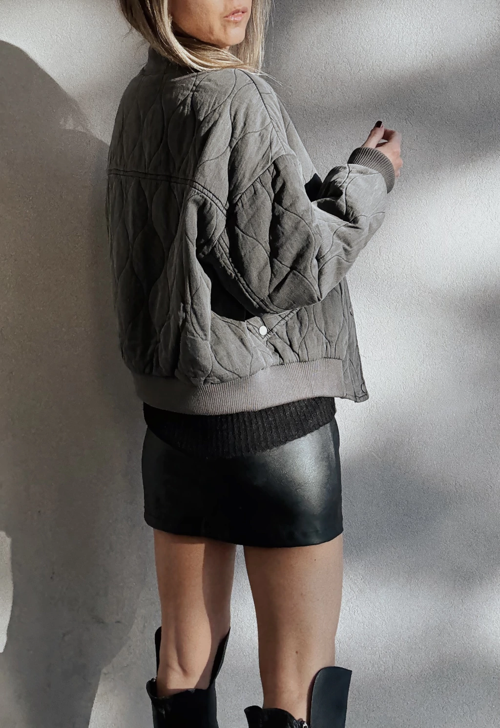 Campera corte bomber tipo matelassee hondeado, forrada, con cuello mao en rib de morley tanto en puños, cuello y en cintura. Cierre metálico al frente, oculto por gran cartera con broches metálicos. Posee bolsillos frontales con tapa & broches metálicos con detalle de frunces en las mangas.
