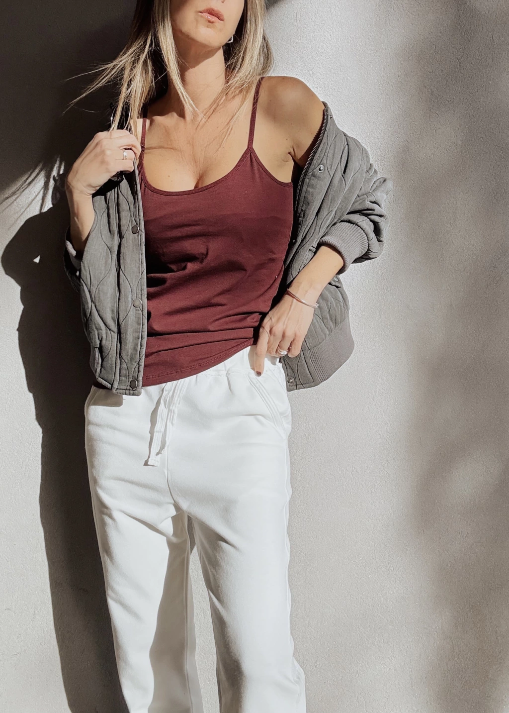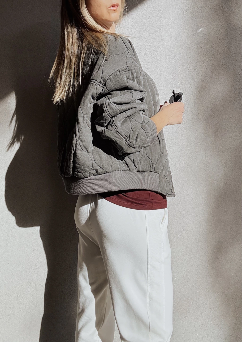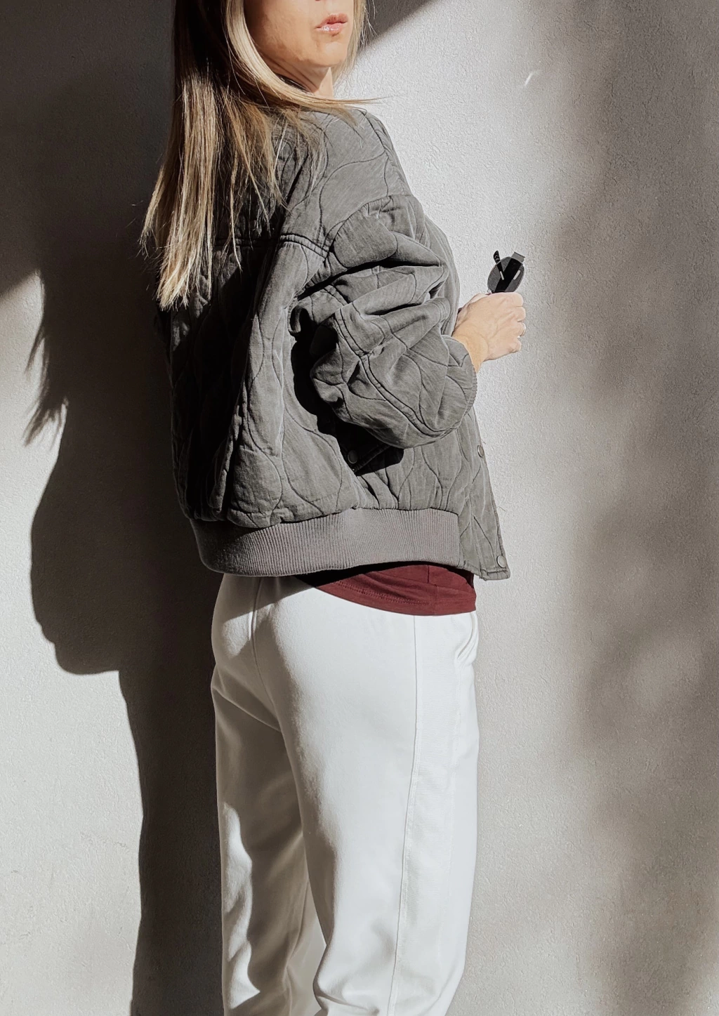 Campera corte bomber tipo matelassee hondeado, forrada, con cuello mao en rib de morley tanto en puños, cuello y en cintura. Cierre metálico al frente, oculto por gran cartera con broches metálicos. Posee bolsillos frontales con tapa & broches metálicos con detalle de frunces en las mangas.