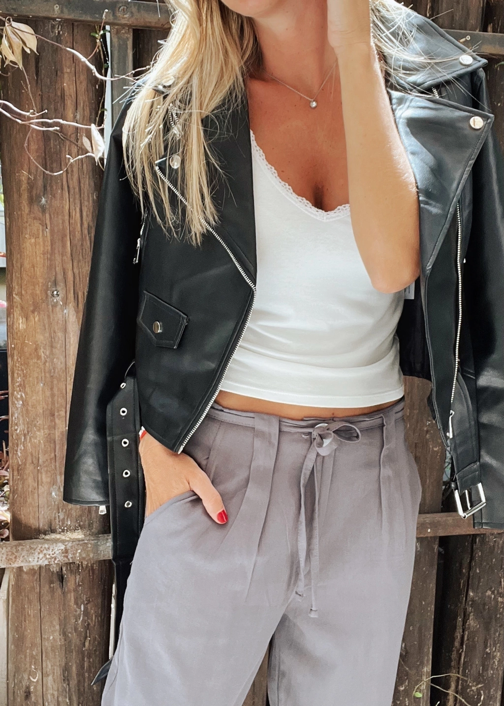 Musculosa escote v, y espalda también en v.