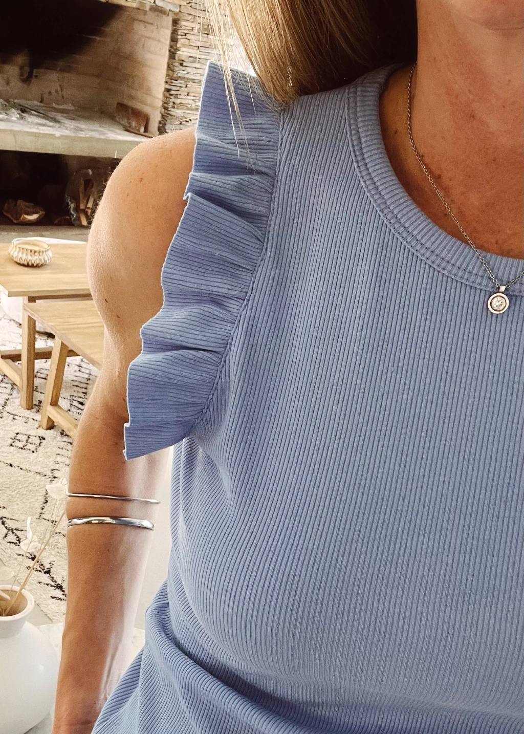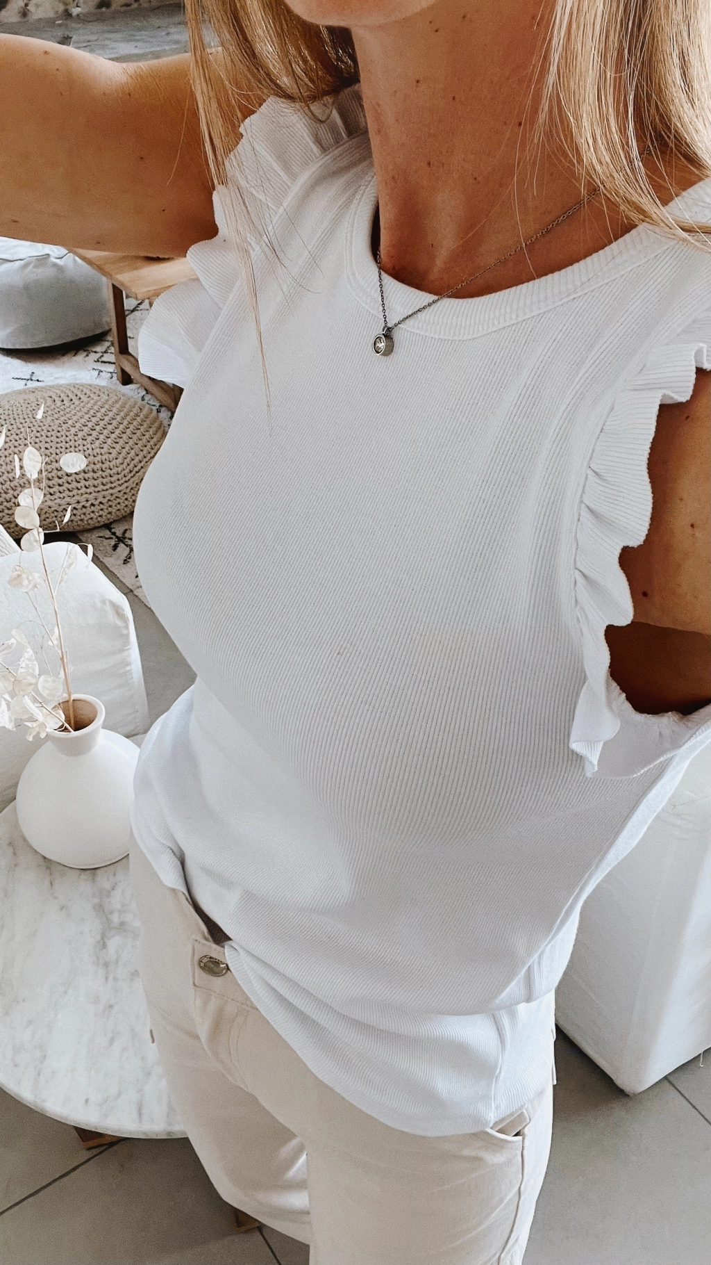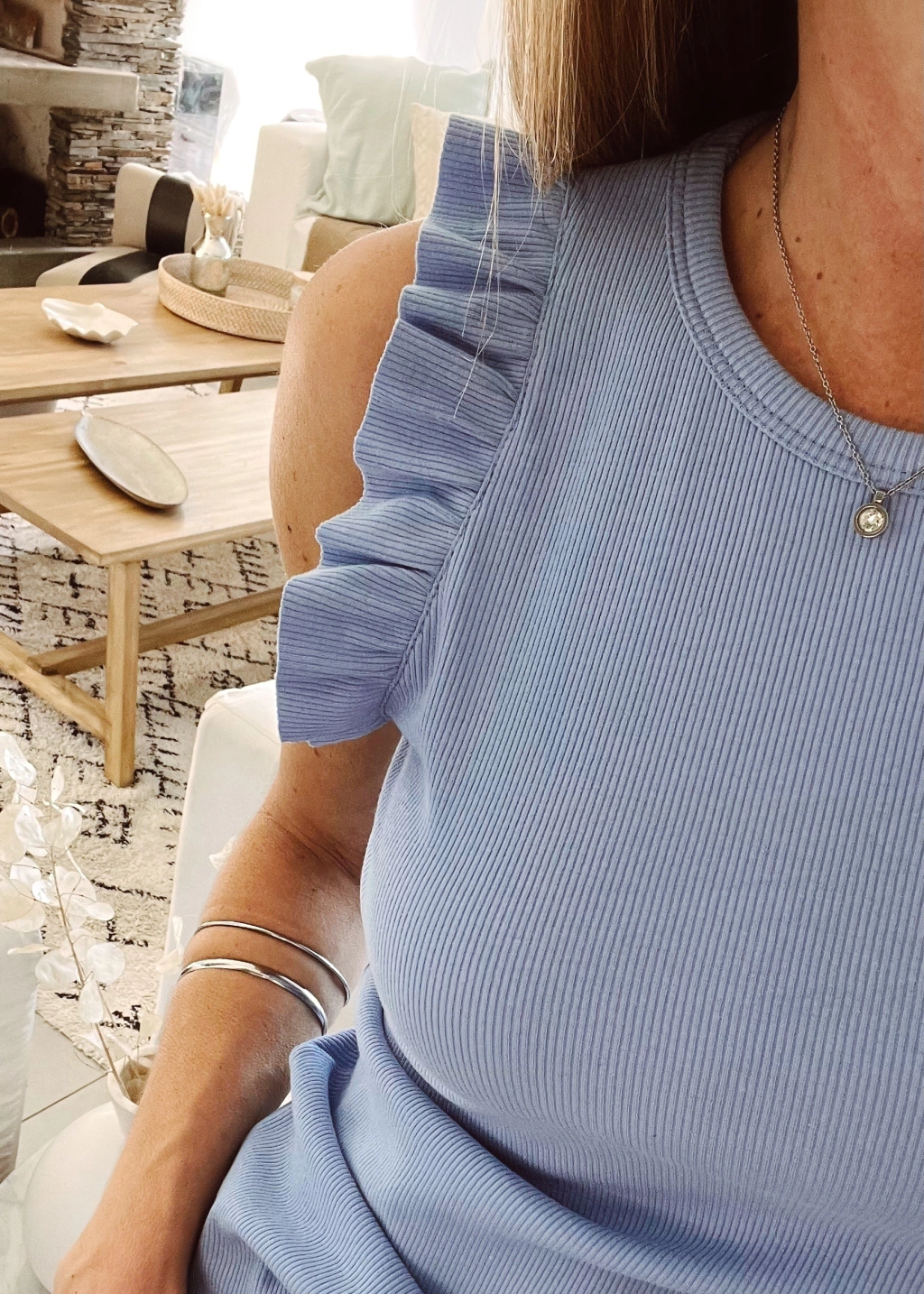 Musculosa de morley con volados en los hombros. Cuello redondo.