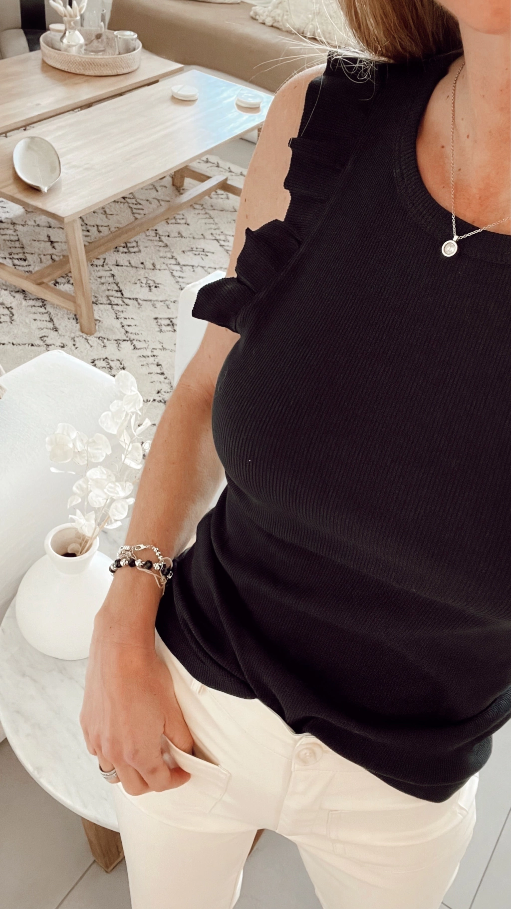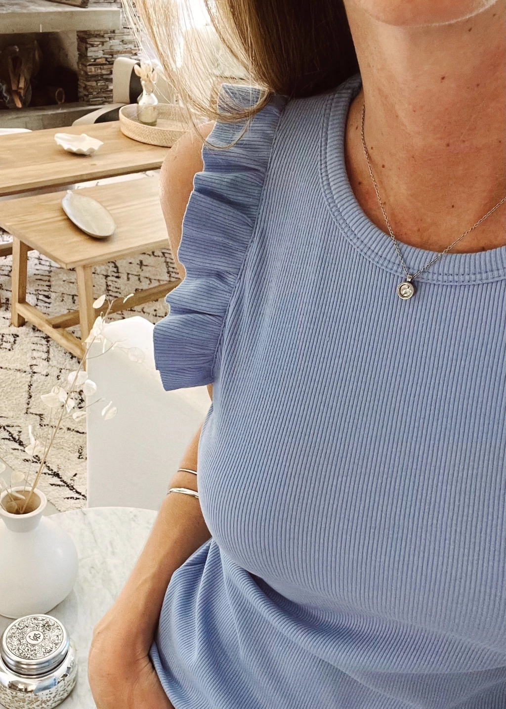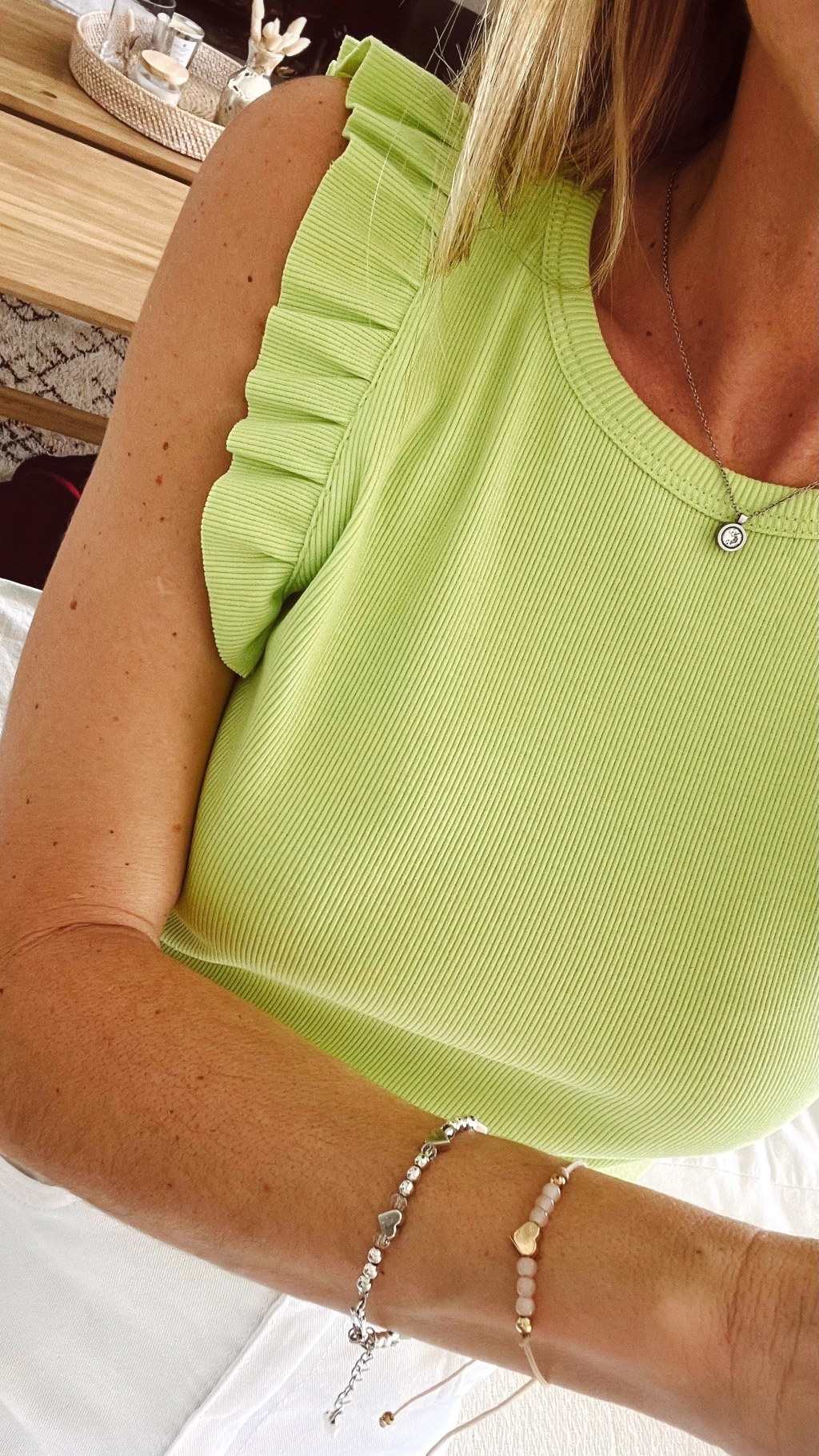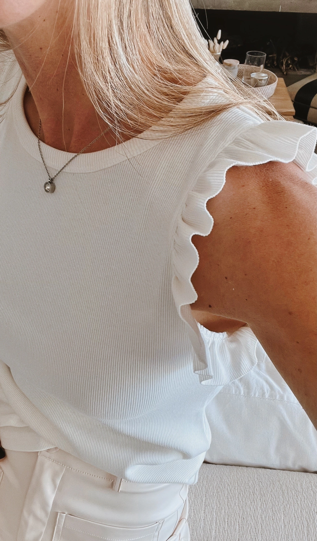 Musculosa de morley con volados en los hombros. Cuello redondo.