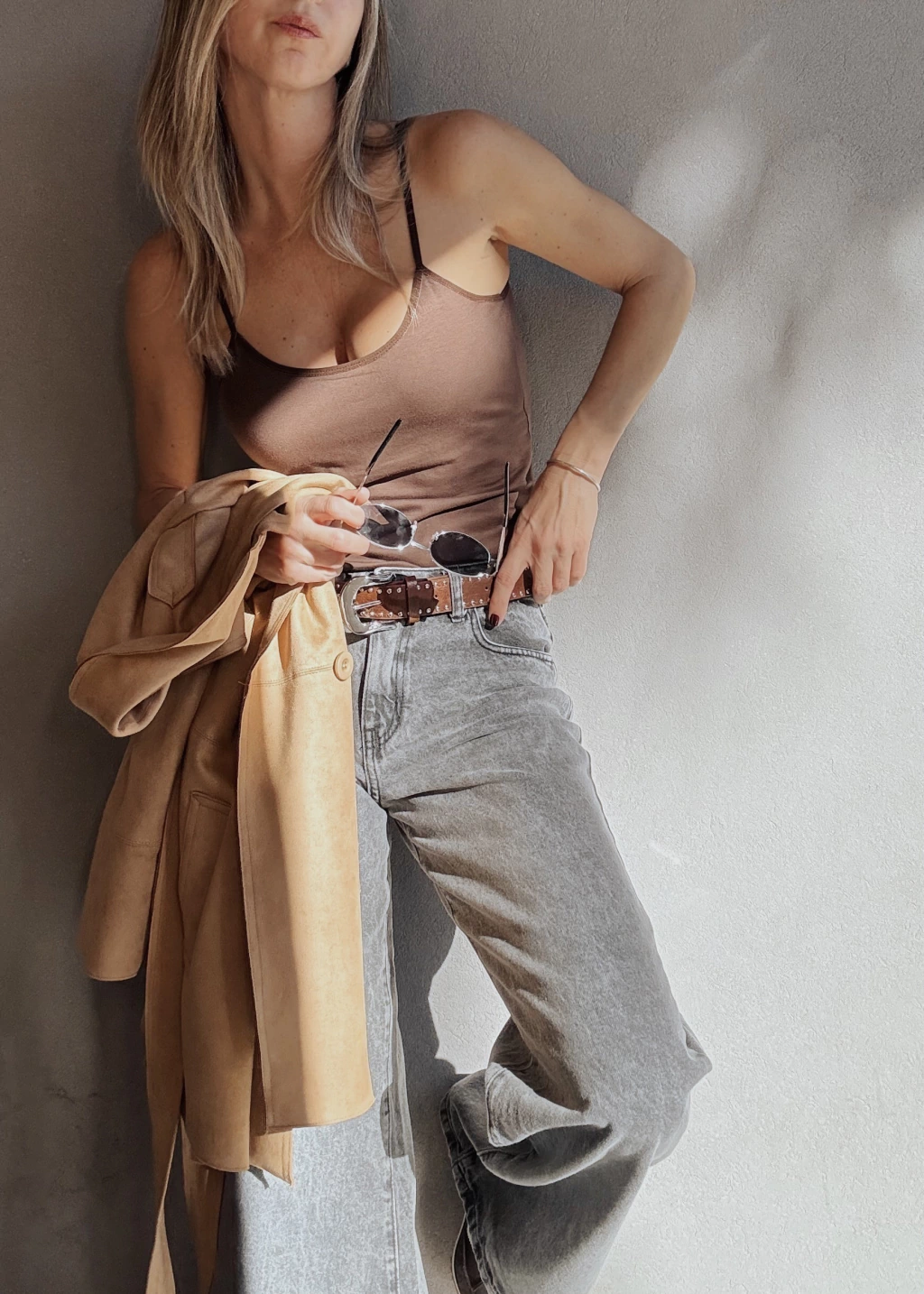 Musculosa bretel fino (NO REGULABLE) con corpiño incorporado.