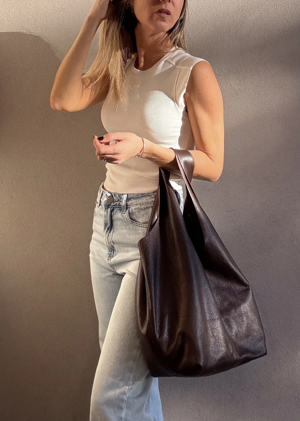 Remera cuello redondo sin mangas con etiqueta al frente "THE REGULAR". Posee detalle de costura vertical en la espalda, y recortes en hombros y sisa. Terminación al corte.