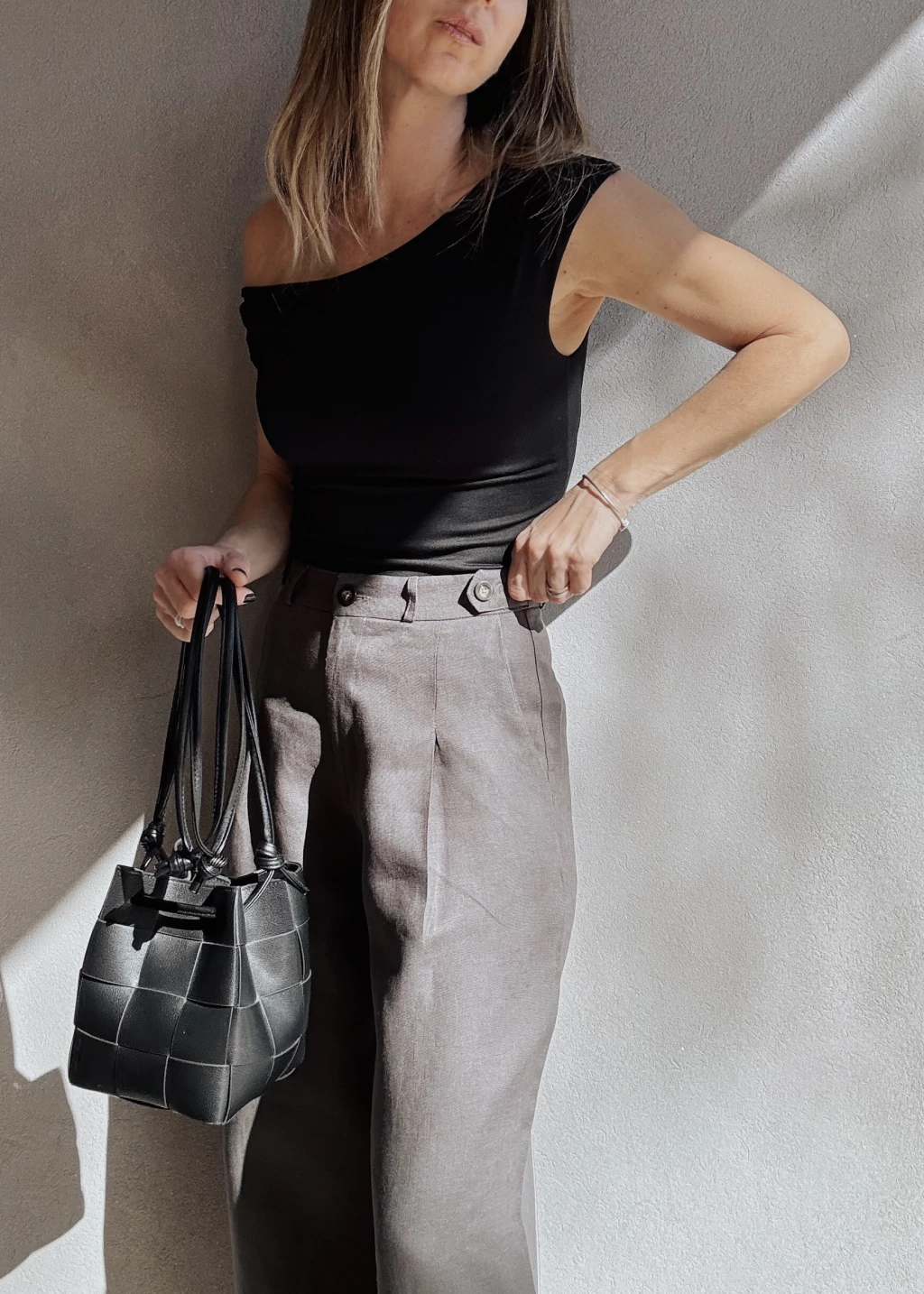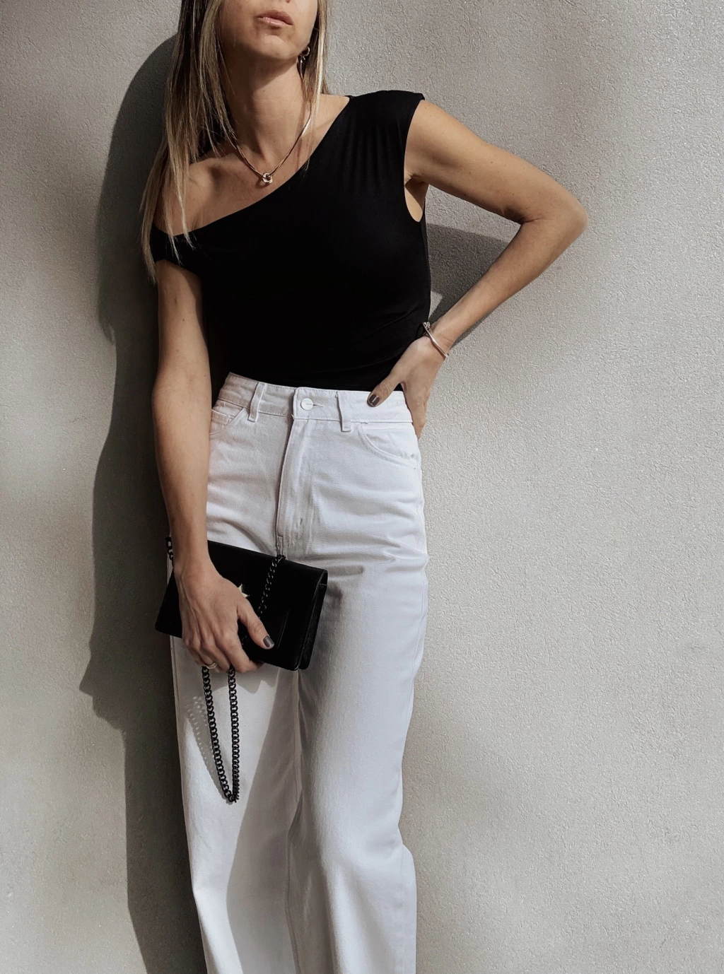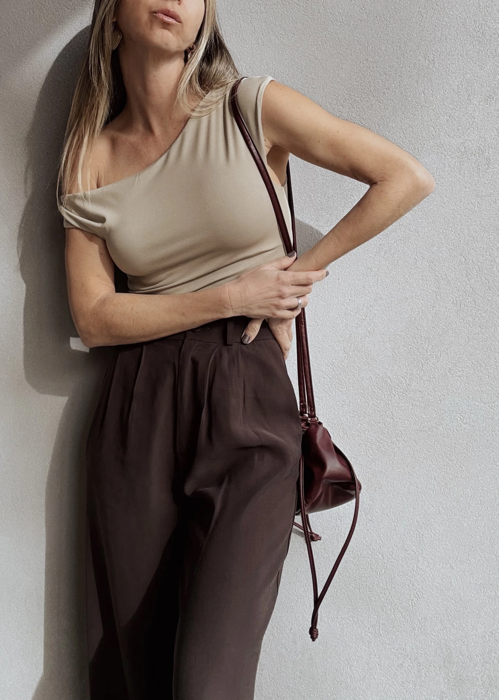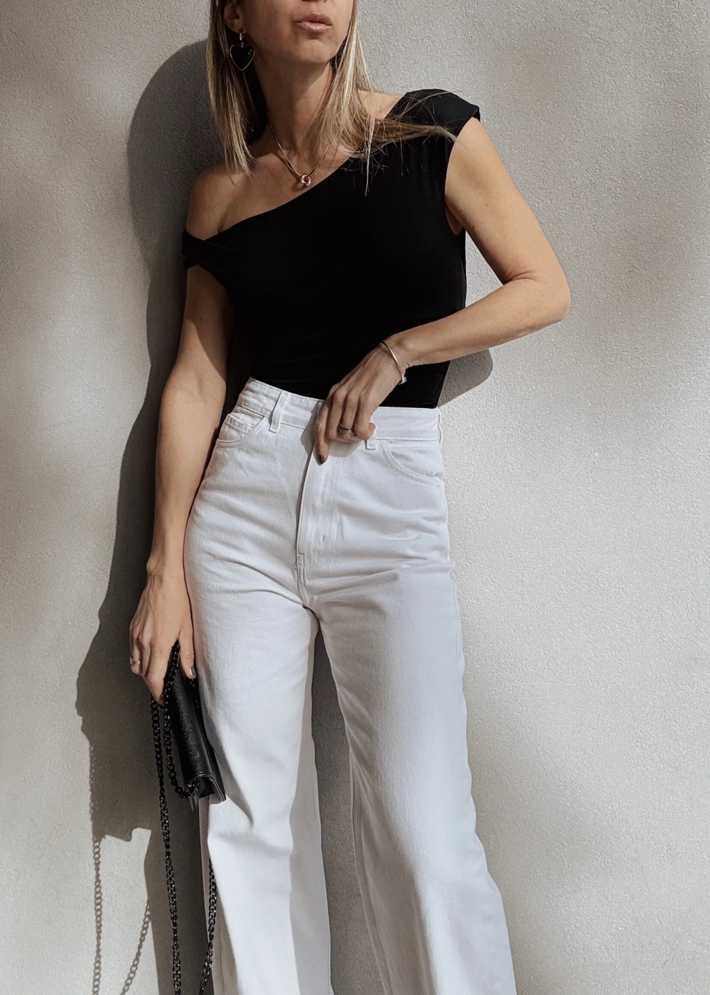 Remera musculosa un hombro, y el otro caido, con torzada. Súper sexy. Posee doble tela.