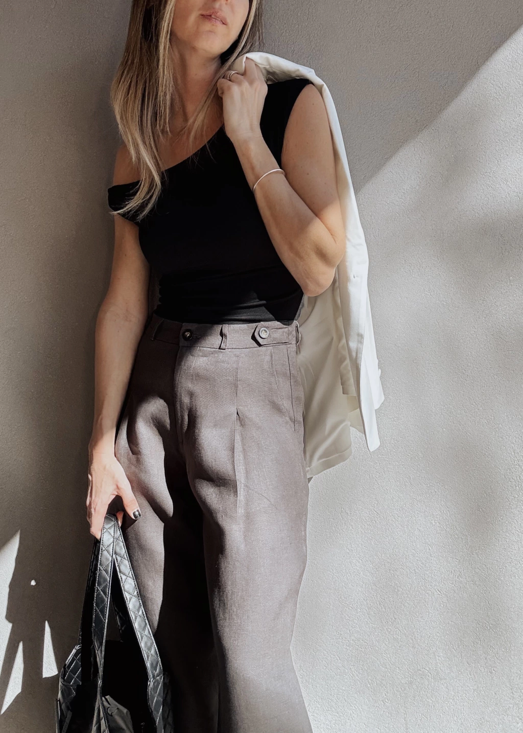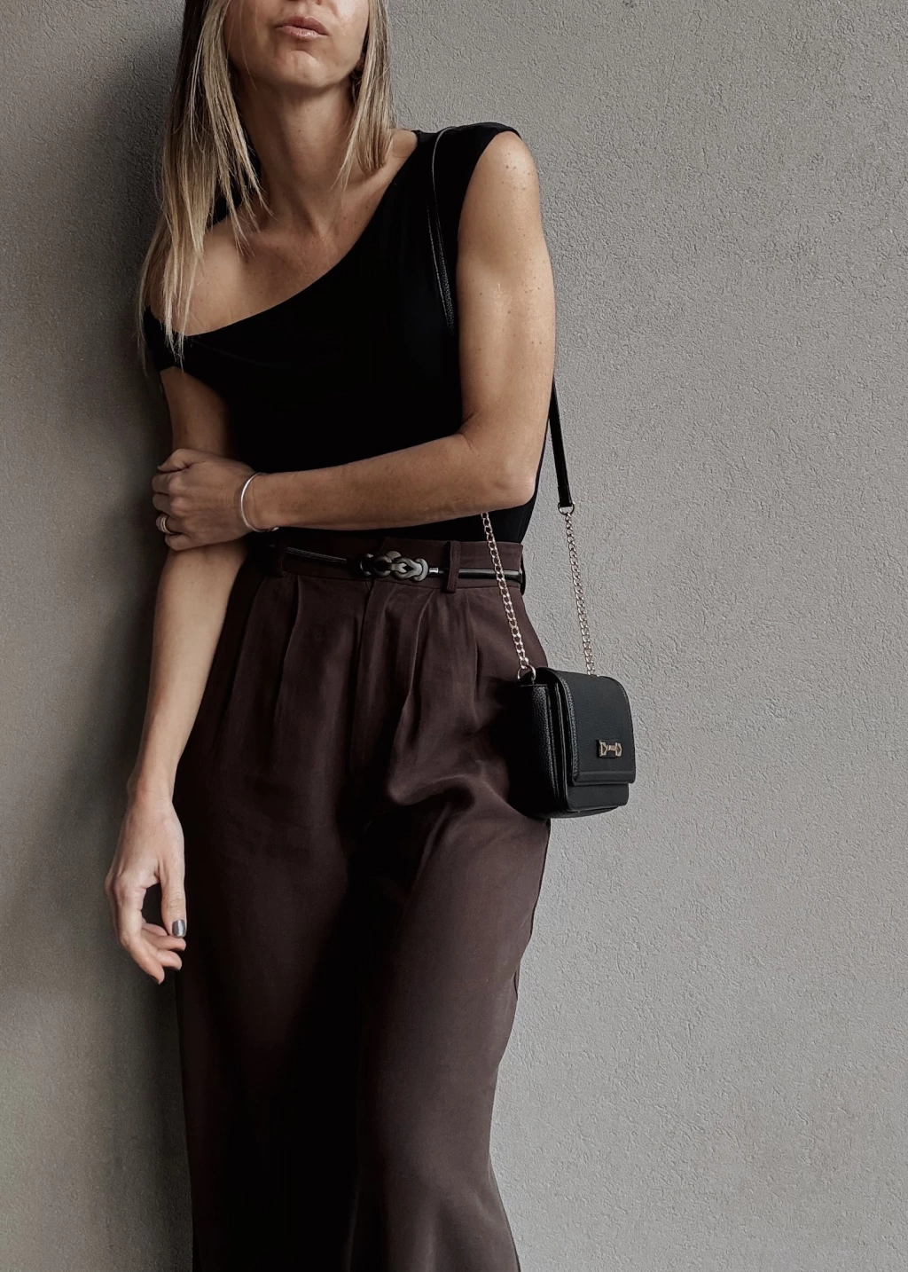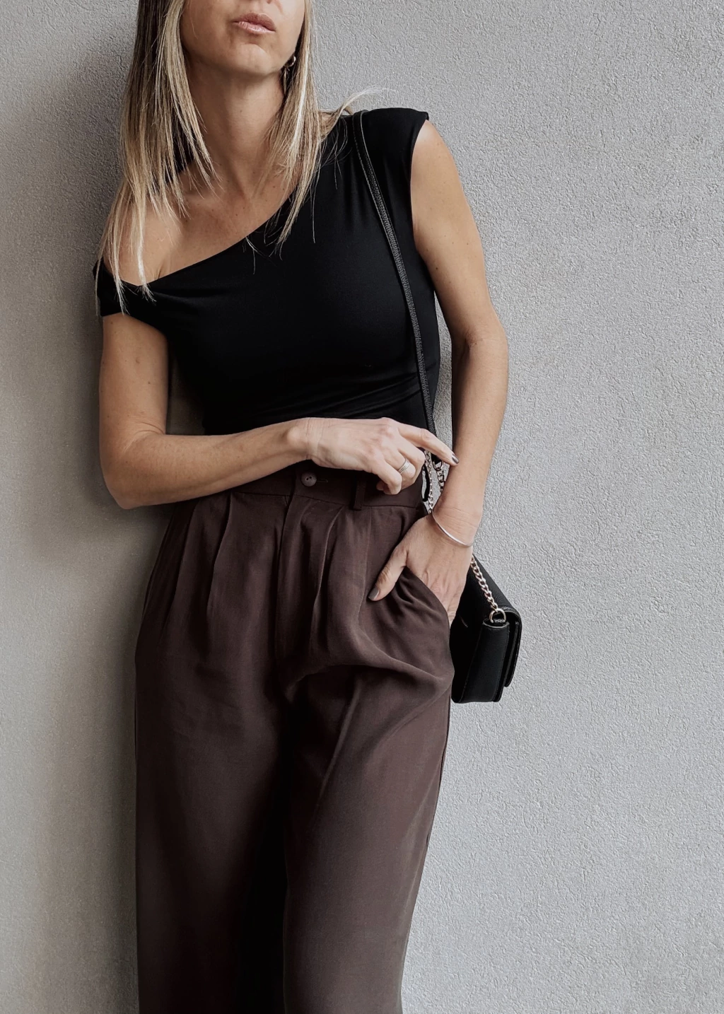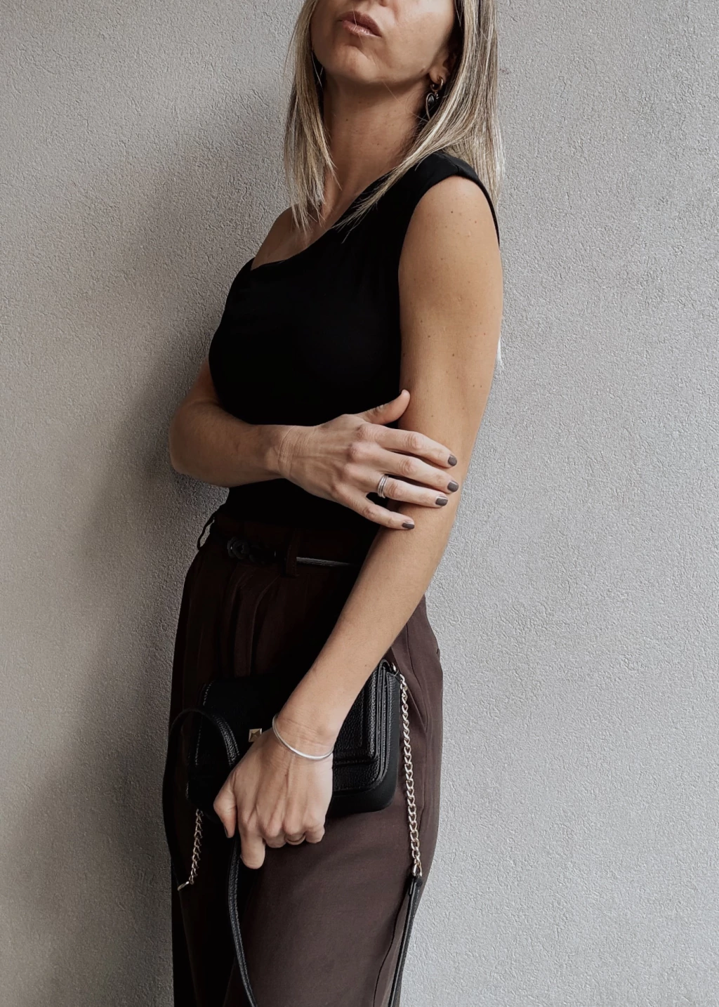 Remera musculosa un hombro, y el otro caido, con torzada. Súper sexy. Posee doble tela.