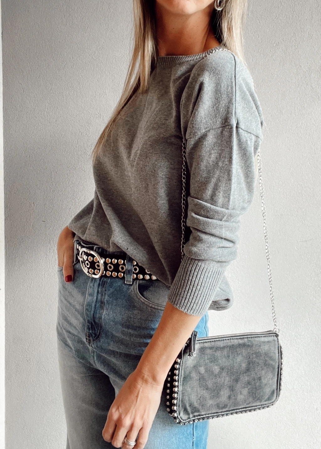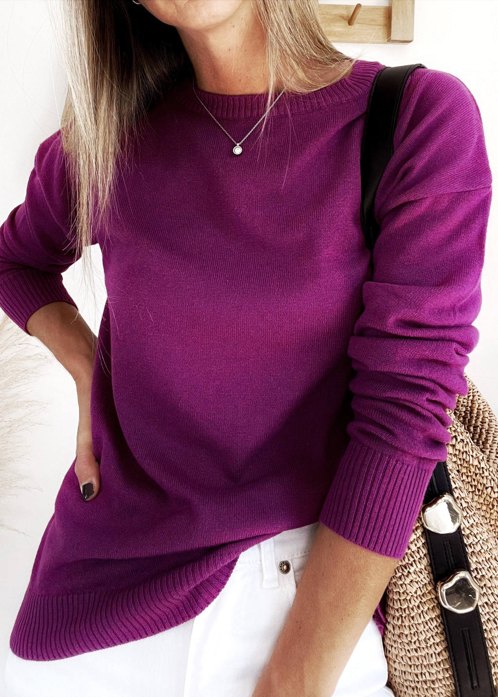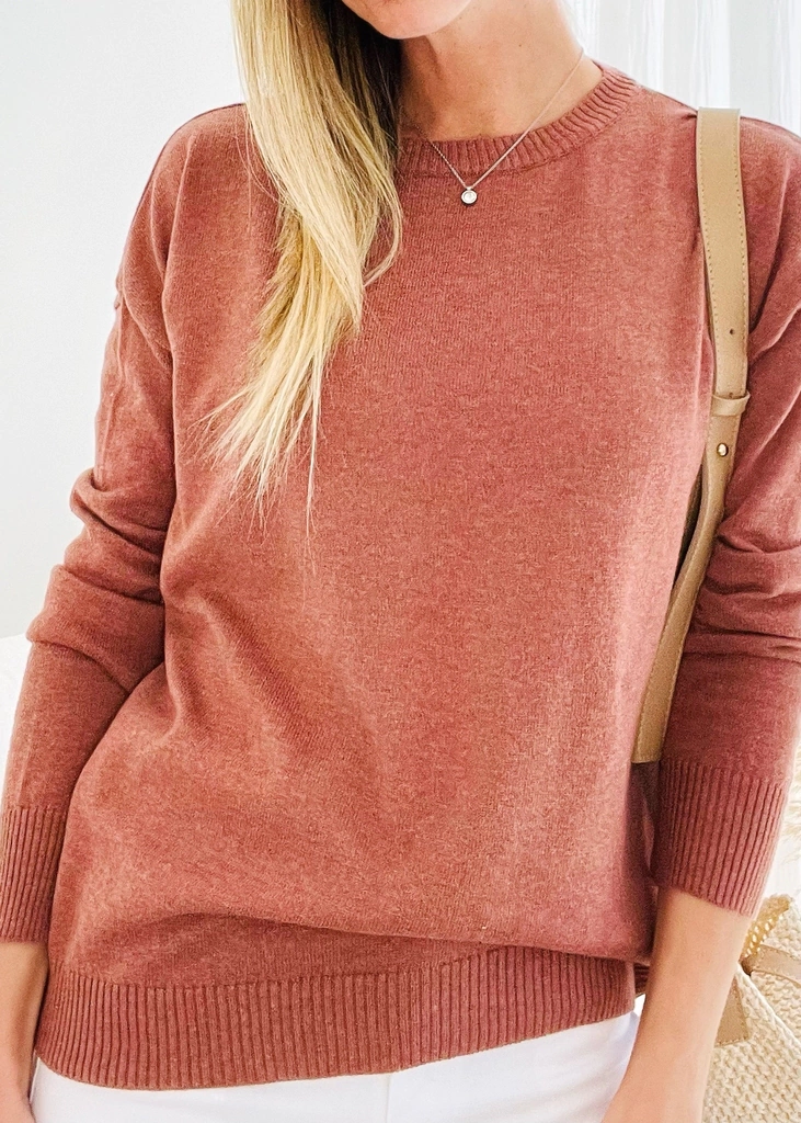 Sweater básico cuello redondo con puño en mangas y cintura.