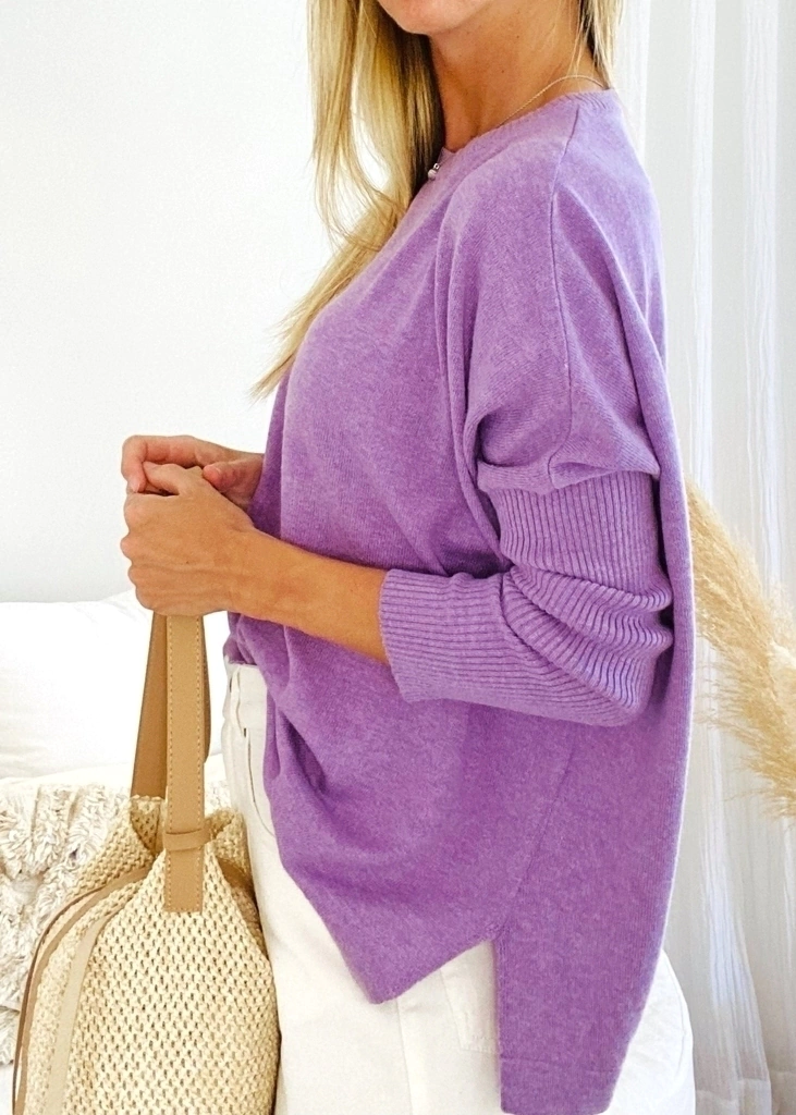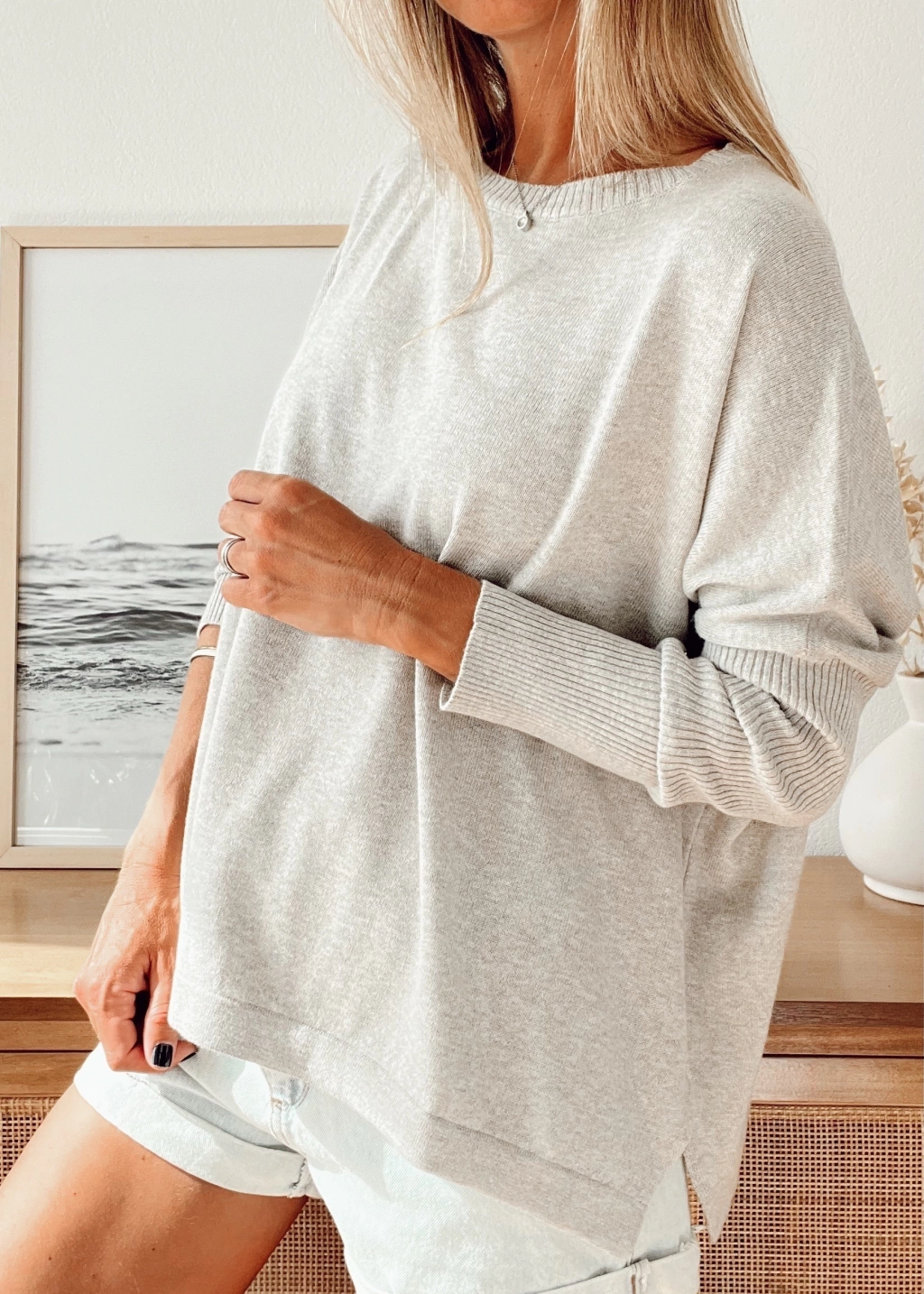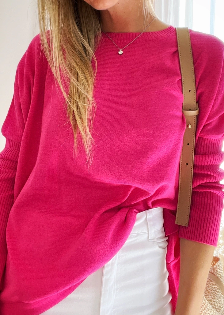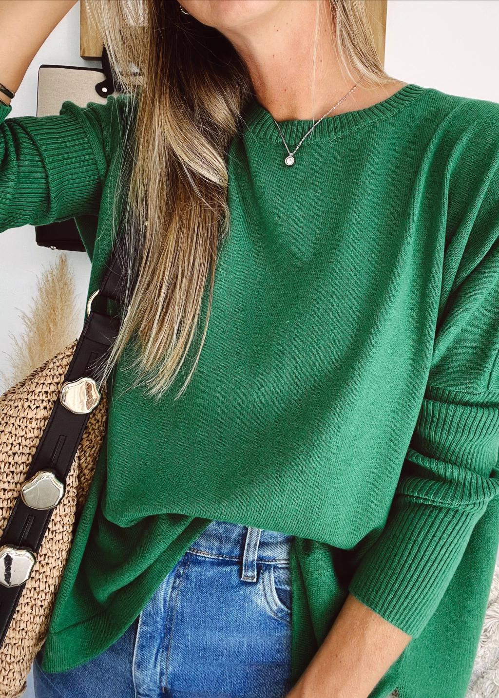 Sweater amplio, cuadrado con cuello redondo y mangas tipo morley. El adorado por todas!