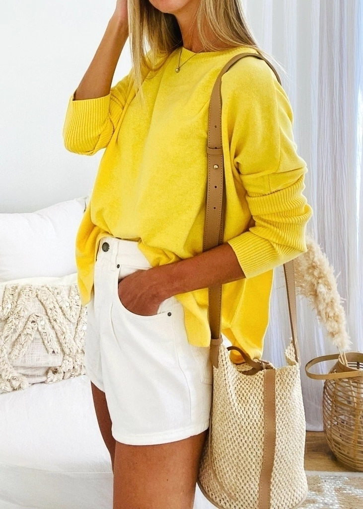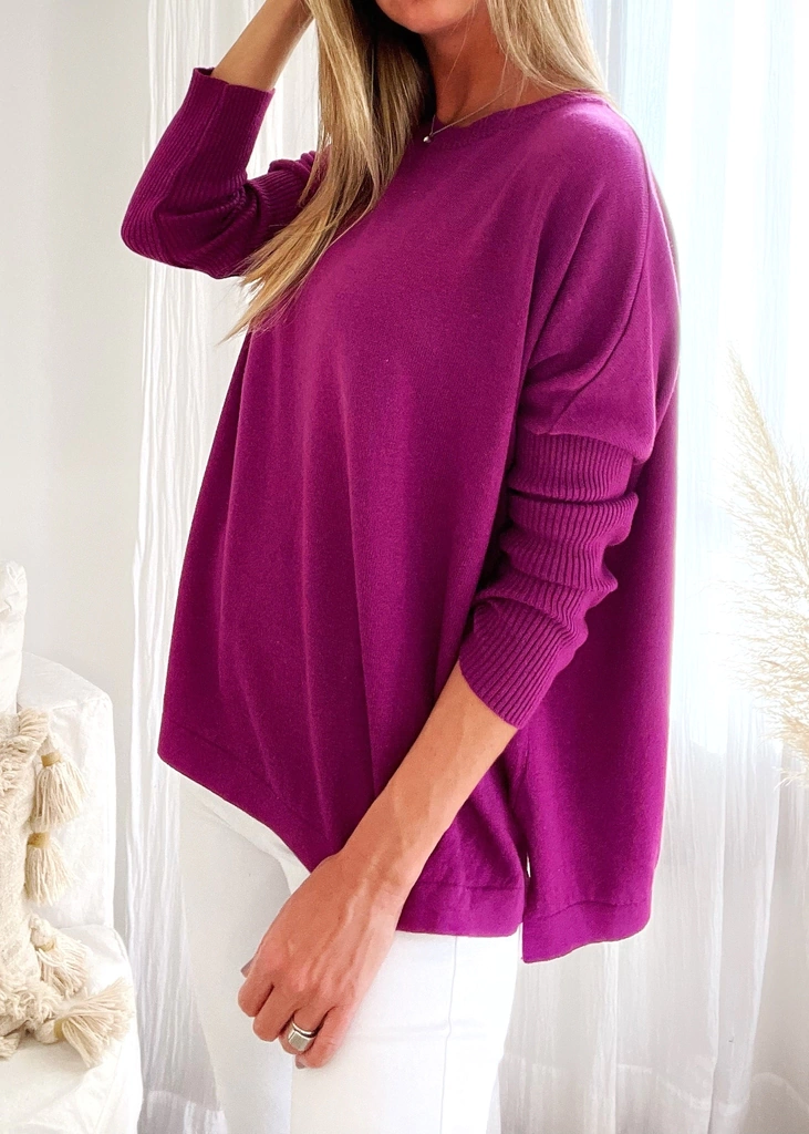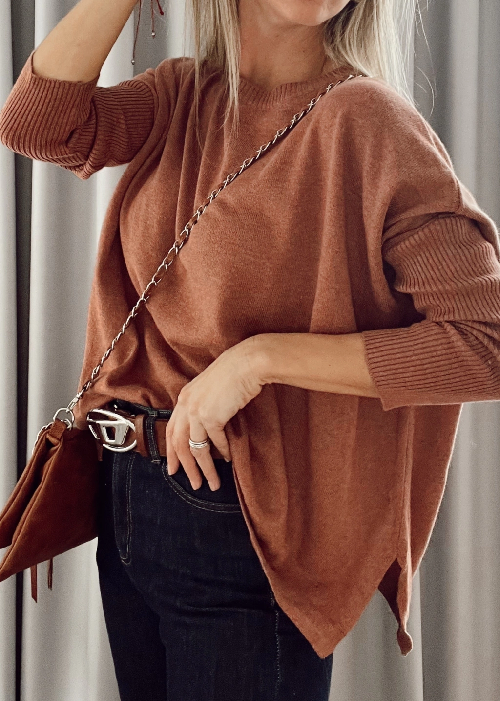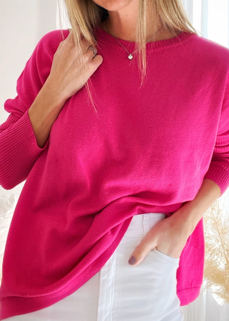 Sweater amplio, cuadrado con cuello redondo y mangas tipo morley. El adorado por todas!