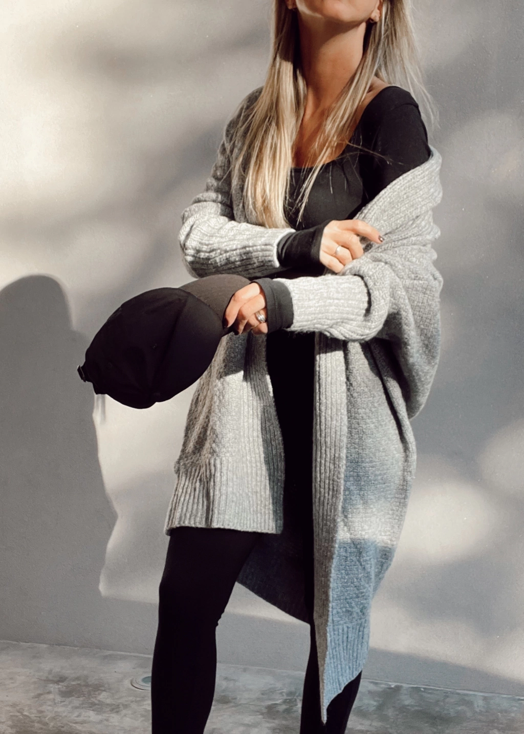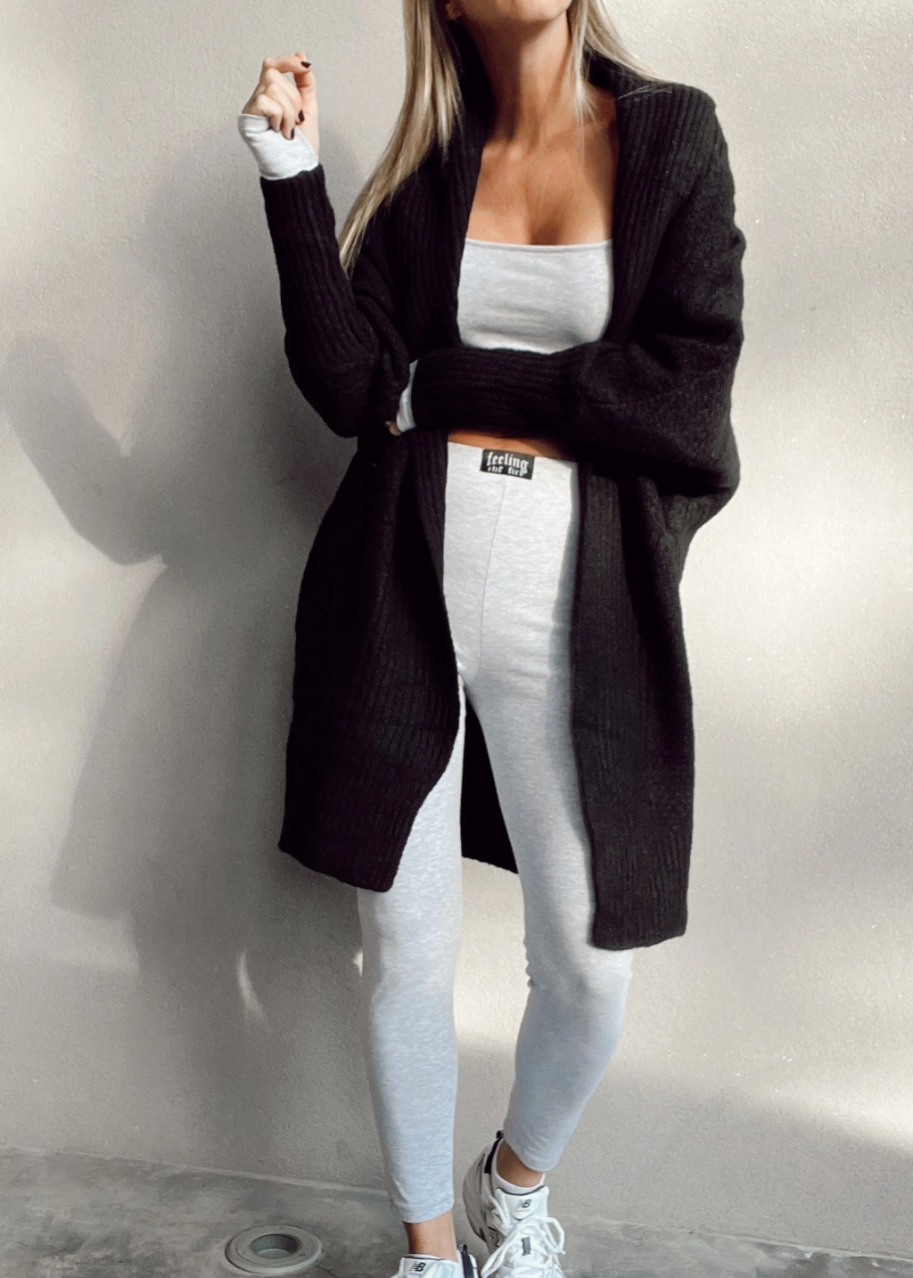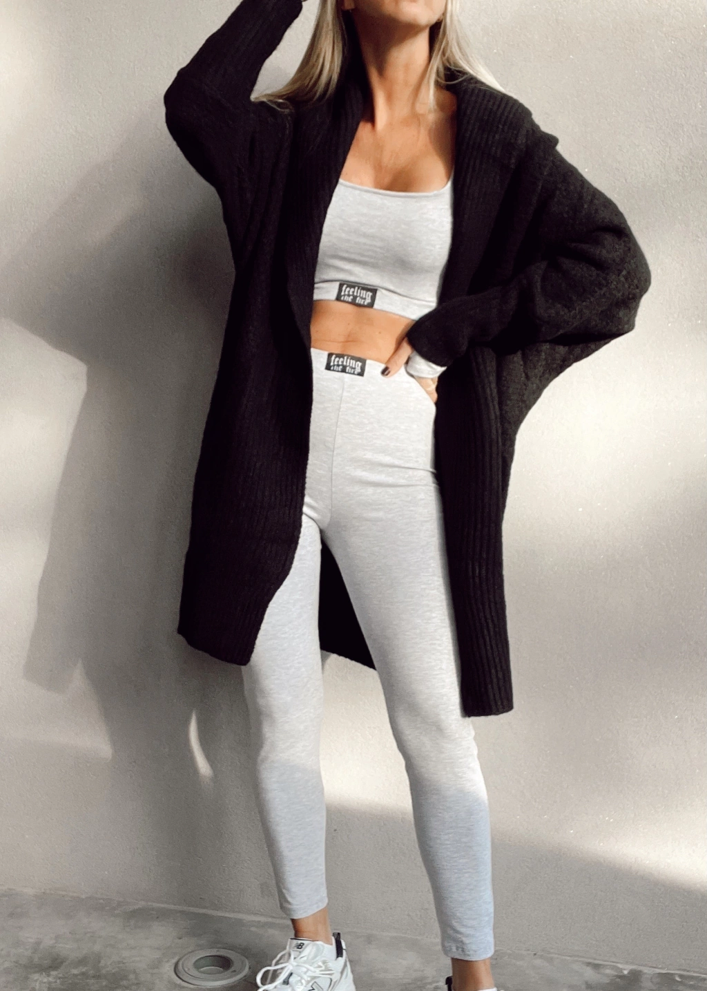 Top manga larga, al cuerpo. Escote y espalda en U. Posee abertura para el dedo pulgar en las mangas.