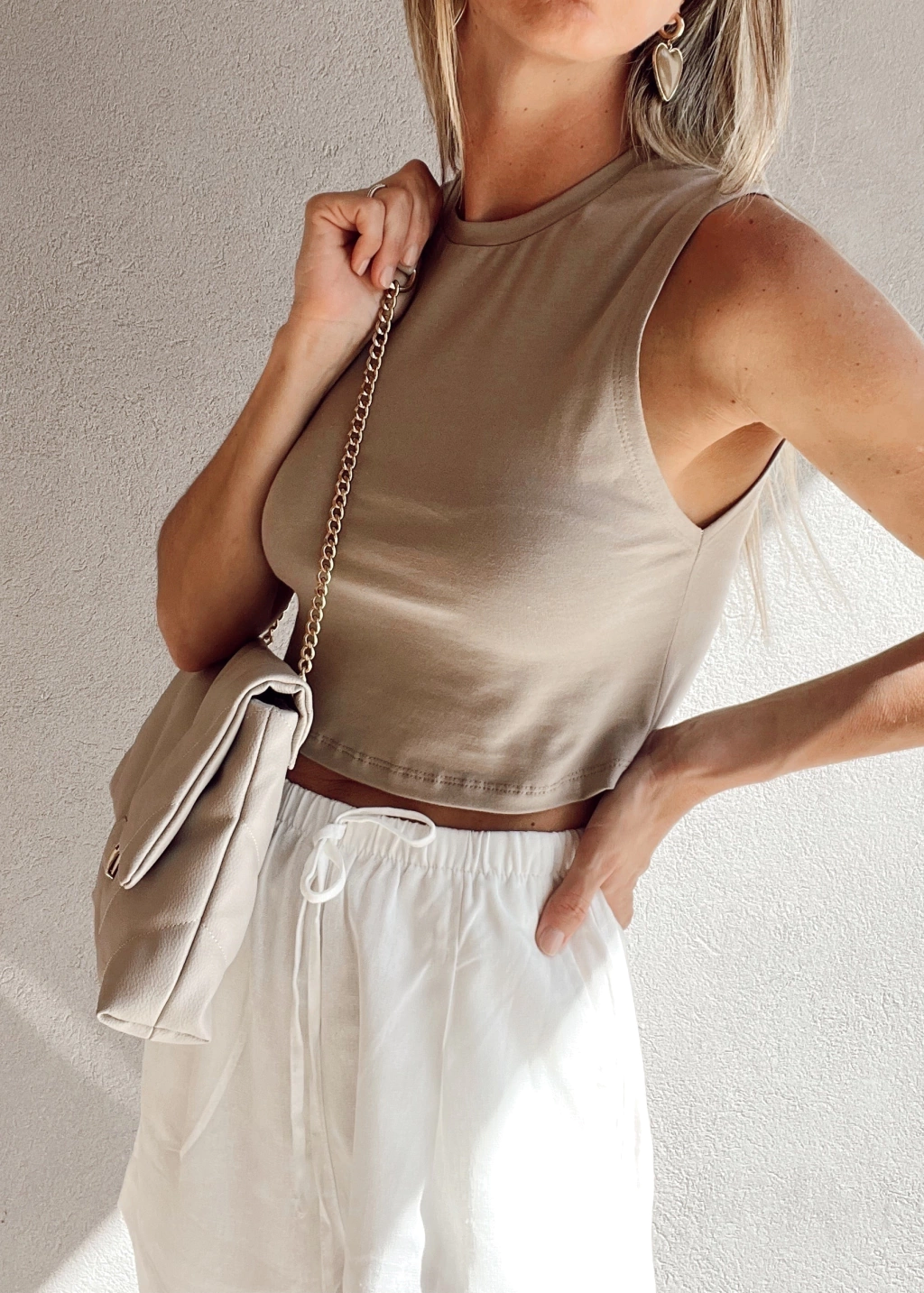 Remera sin mangas, corta, cuello redondo y sisa cavada. Con detalle de etiqueta en la nuca: "The regular cotton culture".
